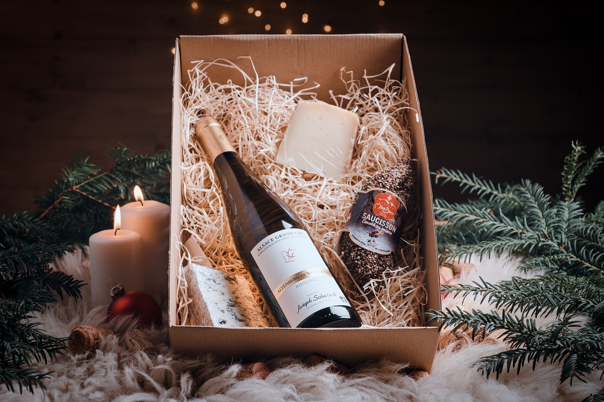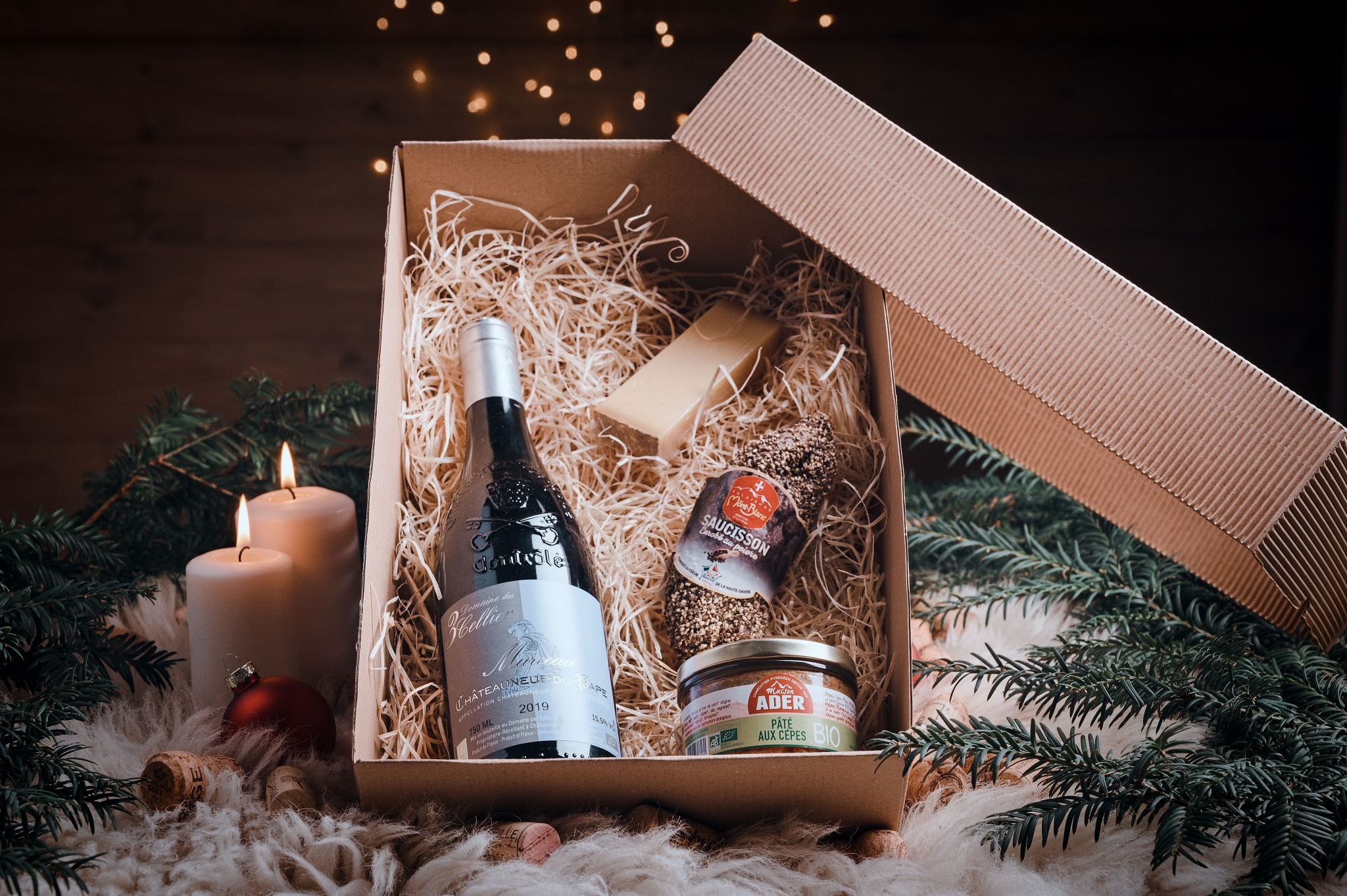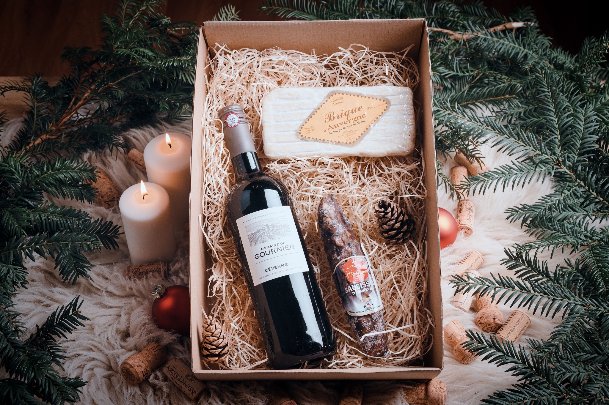 Luxusní balení vína ve vhodné kombinaci s francouzskými specialitami.
