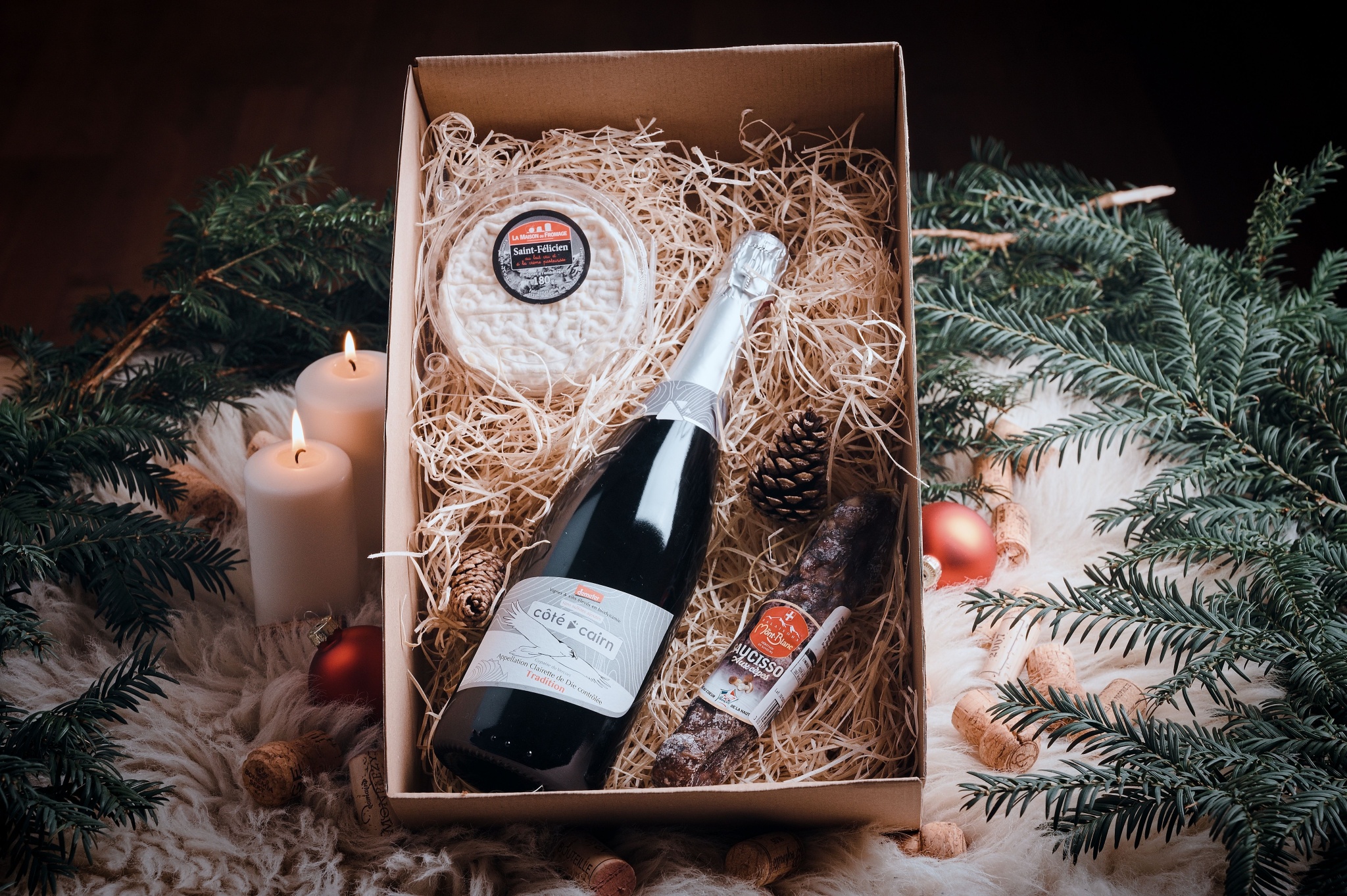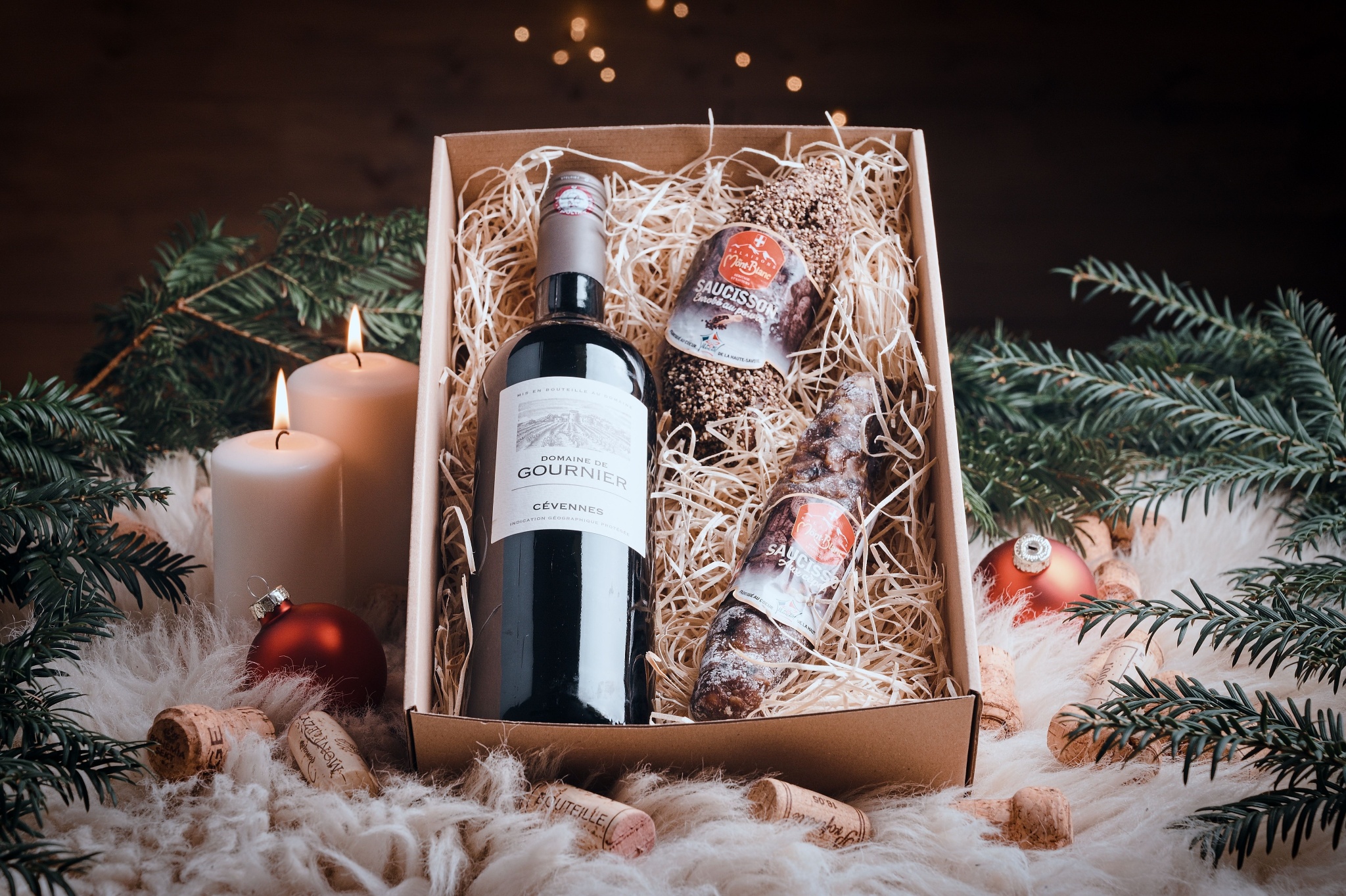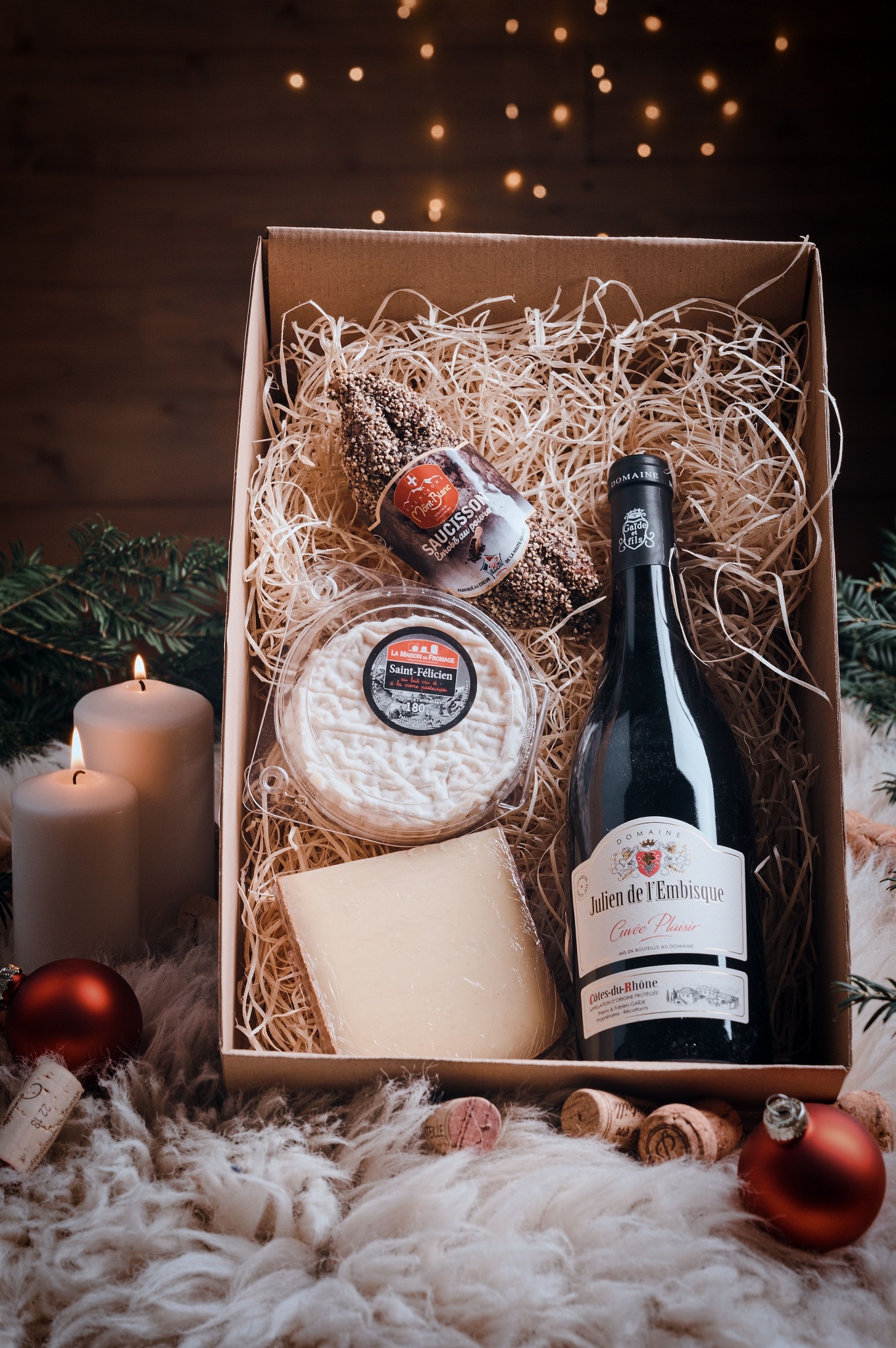 Luxusní balení vína ve vhodné kombinaci s francouzskými specialitami.